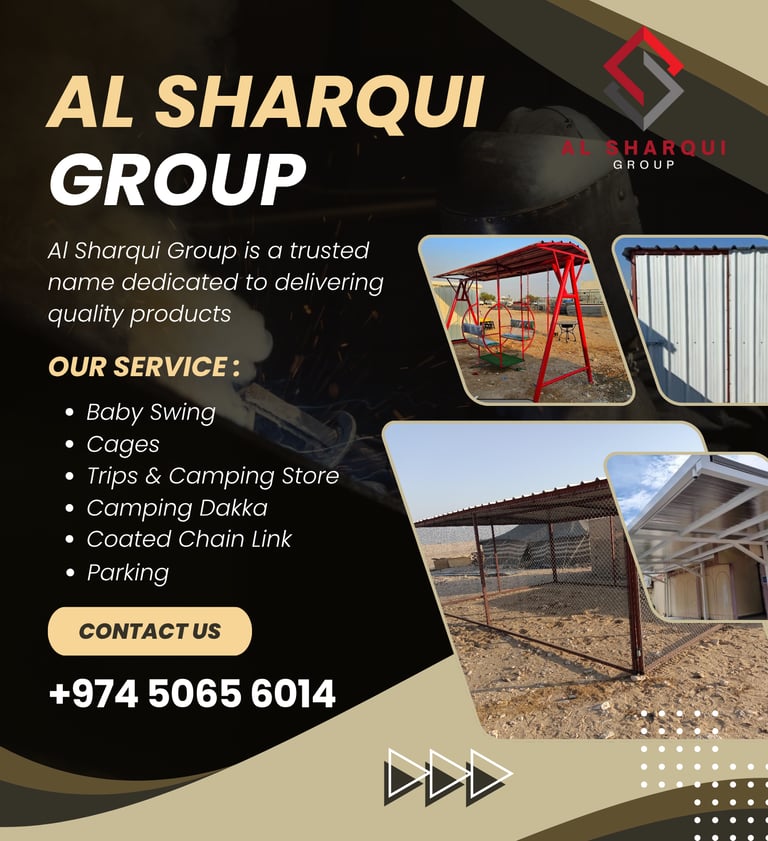 Al Sharqui Group is a trusted name dedicated to delivering quality products and services that enhance outdoor living, animal care, and recreational experiences. We offer a diverse range of solutions including baby swings, animal cages, camping and trip equipment, portable toilets, metal benches, and coated chain links.