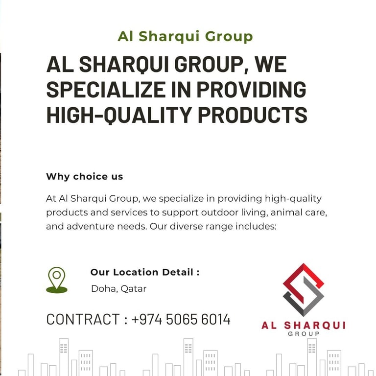 At Al Sharqui Group, we specialize in providing high-quality products and services to support outdoor living, animal care, and adventure needs. Our diverse range includes: