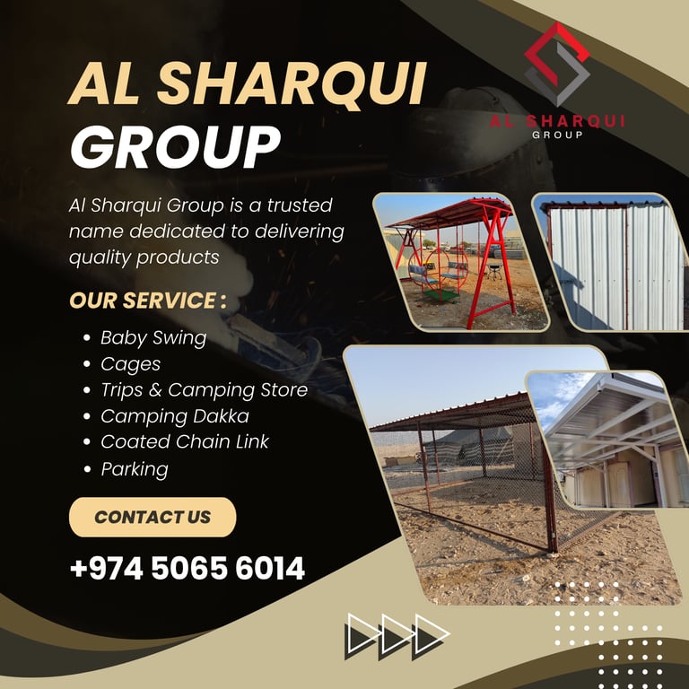Al Sharqui Group is a trusted name dedicated to delivering quality products and services that enhance outdoor living, animal care, and recreational experiences. We offer a diverse range of solutions including baby swings, animal cages, camping and trip equipment, portable toilets, metal benches, and coated chain links.